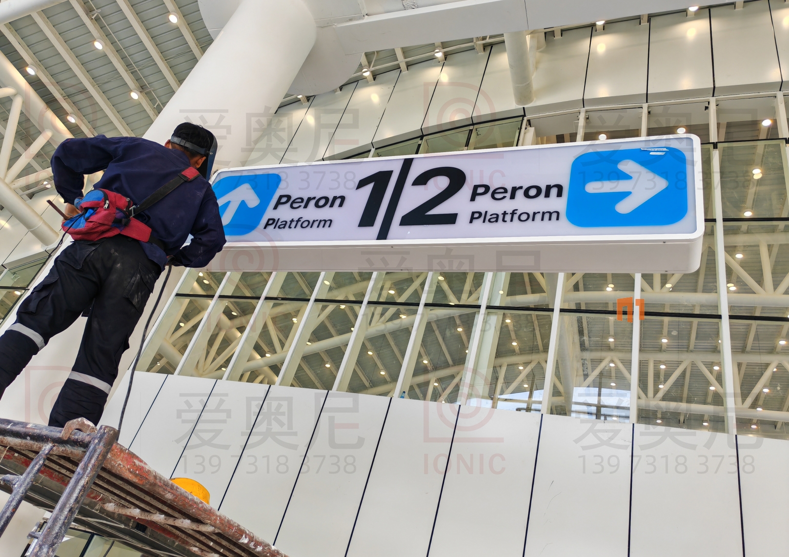 下圖是愛奧尼標(biāo)識(shí)公司為印尼雅萬高鐵帕達(dá)拉郎站制作和安裝指導(dǎo)服務(wù)的靜態(tài)標(biāo)識(shí)??蛻魧?xiàng)目制作工藝非常滿意。湖南愛奧尼標(biāo)識(shí)工程有限公司是一家專業(yè)的鐵路標(biāo)識(shí),導(dǎo)向標(biāo)識(shí),高鐵站標(biāo)識(shí),站房標(biāo)識(shí),靜態(tài)標(biāo)識(shí)設(shè)計(jì)制作安裝服務(wù)公司,擁有15年標(biāo)識(shí)設(shè)計(jì)經(jīng)驗(yàn),100多名專業(yè)生產(chǎn)團(tuán)隊(duì),獲得ISO9001質(zhì)量管理體系認(rèn)證等數(shù)10項(xiàng)榮譽(yù)資質(zhì)證書,電話:400-0731-050,13973183738