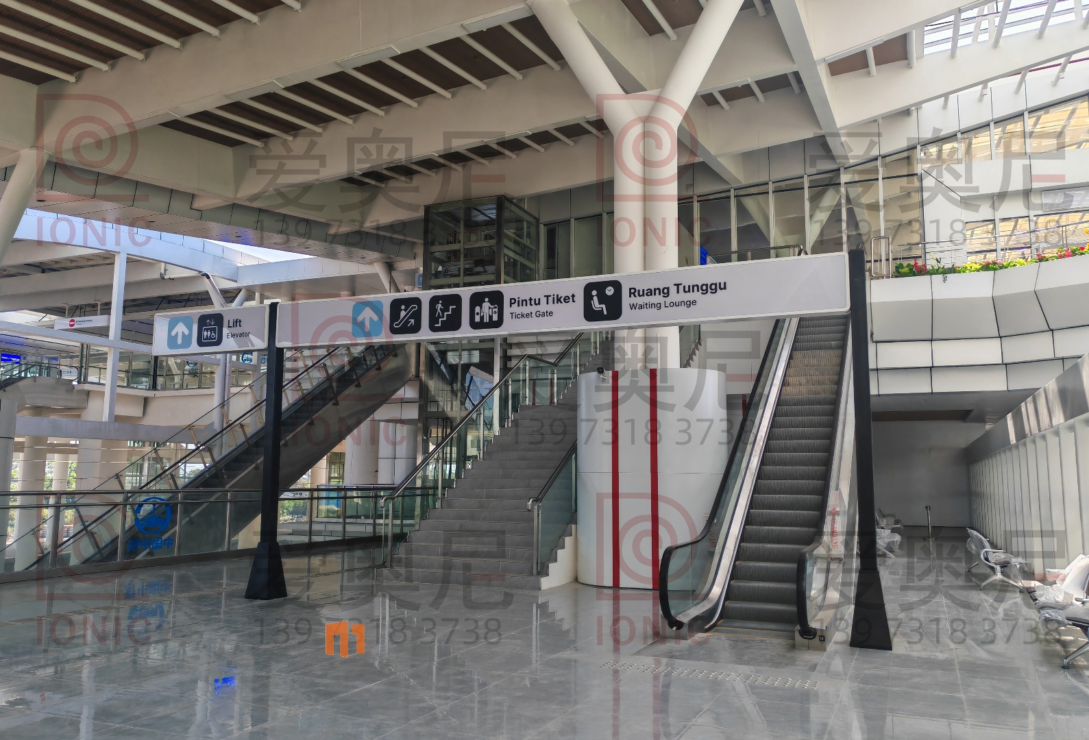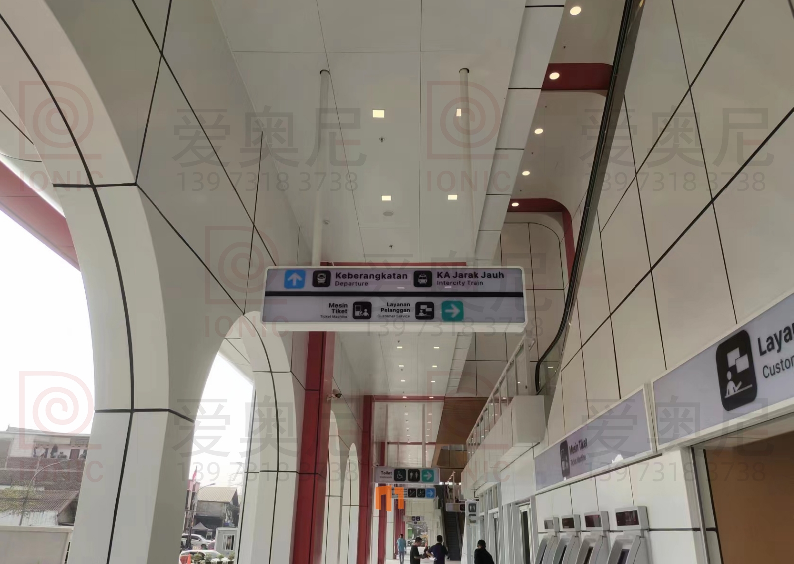 雅萬高鐵是中國共建“一帶一路”倡議和印尼“全球海洋支點(diǎn)”構(gòu)想對接、中印尼兩國務(wù)實(shí)合作的旗艦項(xiàng)目,全線采用中國技術(shù)、中國標(biāo)準(zhǔn),也是印尼和東南亞第一條高速鐵路。雅萬高鐵連接印尼首都雅加達(dá)和旅游名城萬隆,線路全長142.3公里,最高運(yùn)行時(shí)速350公里,始自雅加達(dá)市,途經(jīng)勿加泗市、勿加泗縣、卡拉旺縣、普旺加達(dá)縣、西萬隆縣、芝馬墟市、萬隆縣,終至萬隆市,設(shè)有哈利姆、卡拉旺、帕達(dá)拉朗、德卡魯爾4座車站。愛奧尼助力中鐵三局為帕達(dá)拉郎站提供站內(nèi)所有靜態(tài)標(biāo)識(shí)的生產(chǎn)和安裝指導(dǎo)服務(wù)。
